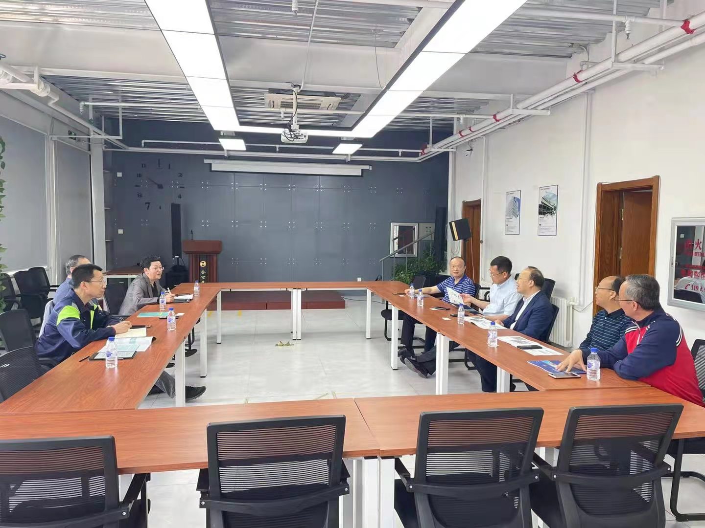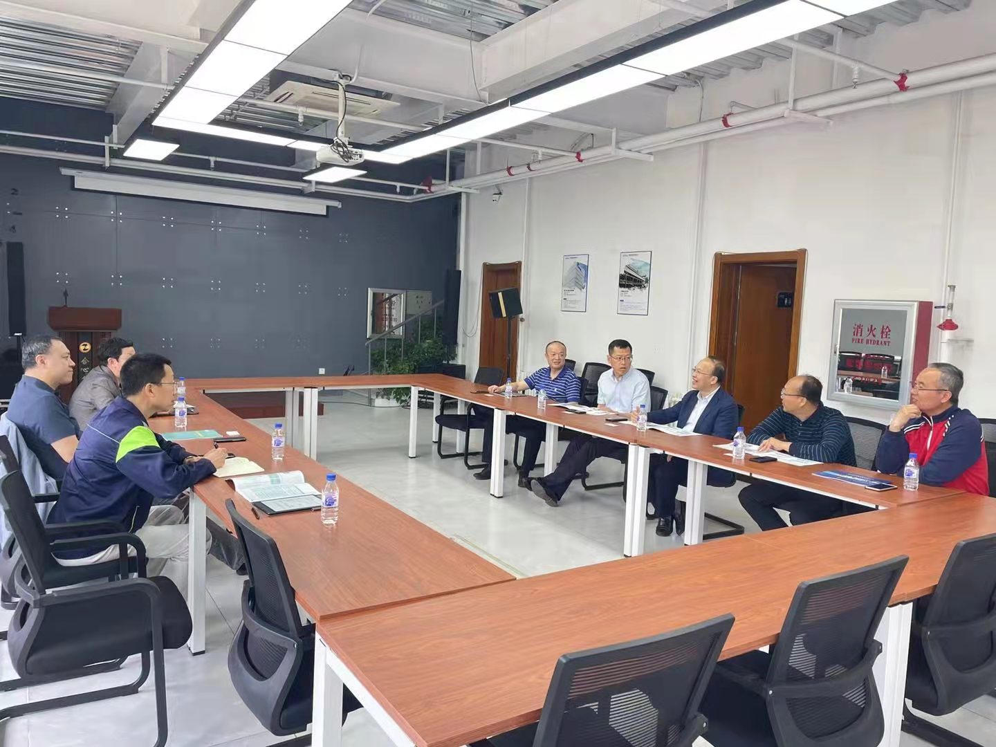 一行参观了生产车间和设计团队工作室,之后双方在会议室进行了会谈。胡天伟董事长介绍了公司的发展历程、取得的成绩和现阶段遇到困难和挑战。李世武院长介绍了黑料正能量