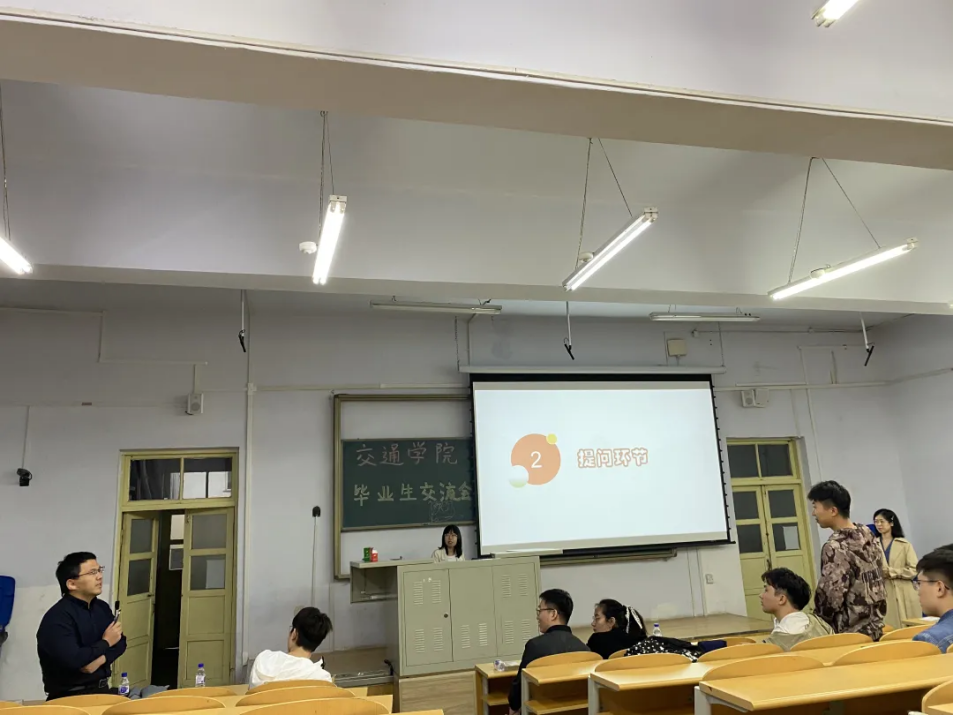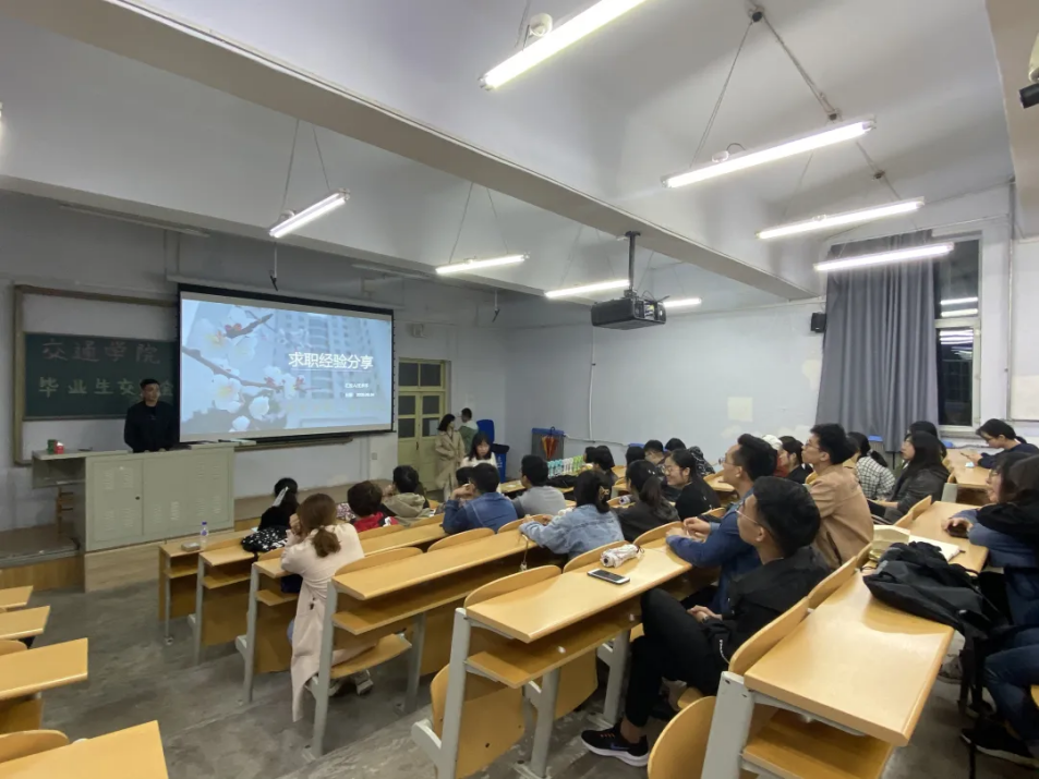 的通知不同时应及时询问避免出现差错;最后硕士毕业生张伟伟同学为大家讲解了相关企业的面试细节,并鼓励同学们积极参加面试,亲身体验,敢于试错,在不断尝试中成长,同时强调了“不打无准备之战”,鼓励大家在平时的学习生活中多准备,多练习,才能厚积薄发,找到理想的工作。