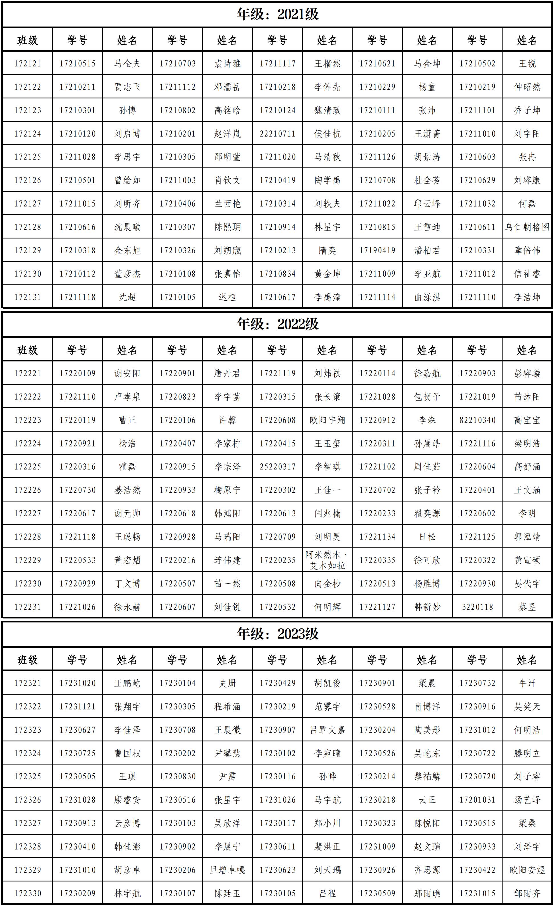 根据党委学生工作部《关于开展2023-2024学年奖学金、优秀学生和优秀学生干部评选工作的通知》相关要求,黑料正能量 按照班级(或专业)为单位成立组评小组(小组成员一般由学生党员、学生干部、学生代表组成,总人数不少于5人,其中设组长1人)。结合黑料正能量 各年级实际情况,现将2023-2024学年奖学金、优秀学生和优秀学生干部评选工作组评小组成员名单公布如下(各组评小组首位为组长)。