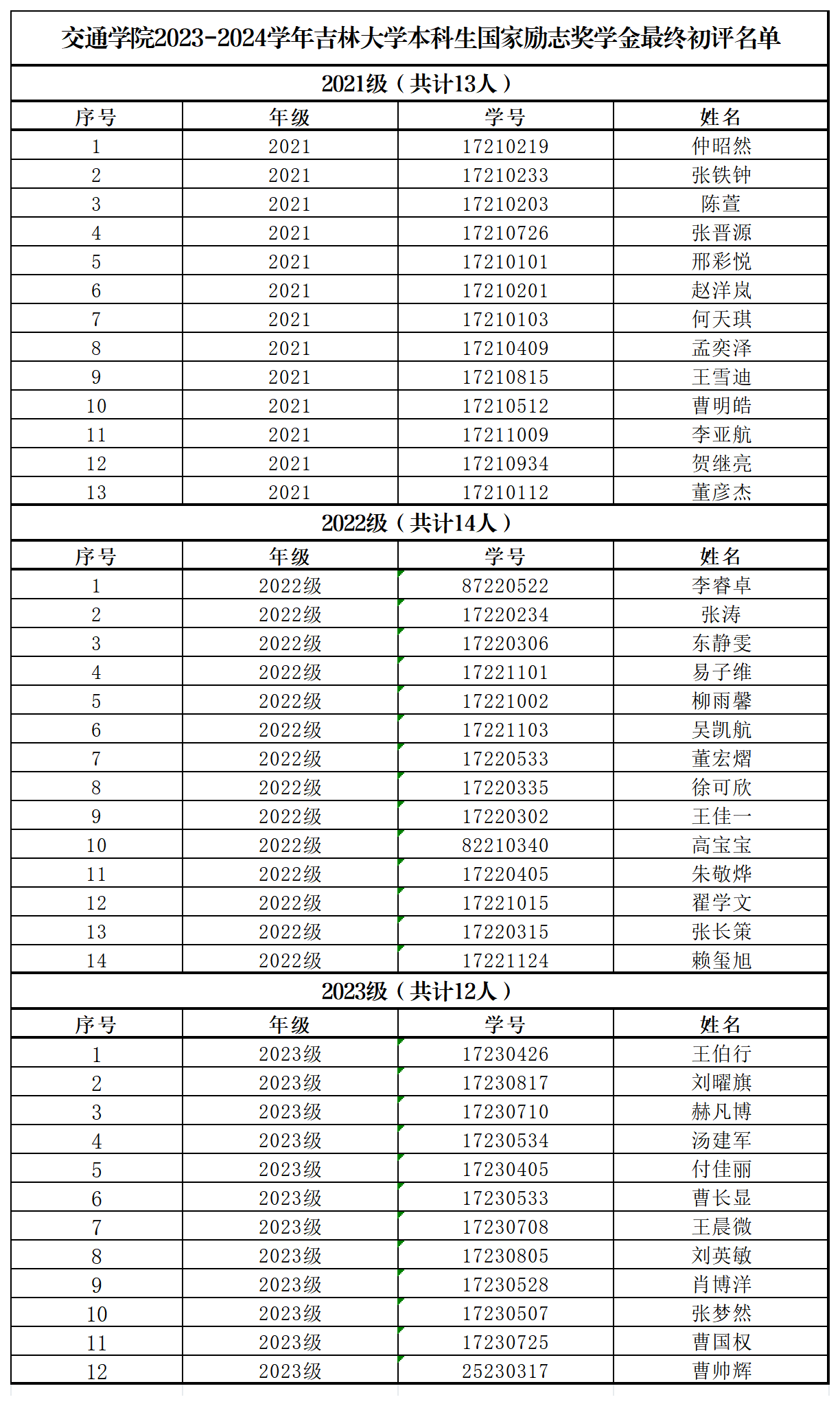 本科生国家励志奖学金初评名单》作废,现将结果公示如下: